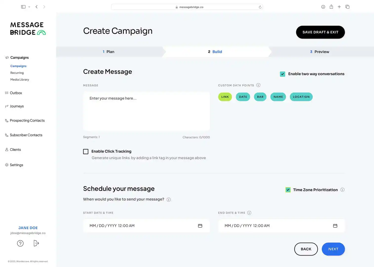 Message Bridge gives you everything you need to turn data into dialogue. The platform is fast, intuitive, and built to make communication feel less like work and more like impact.